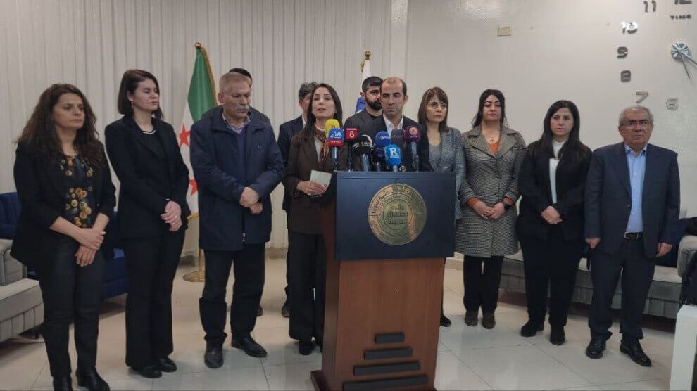 Hevserokê Partiya Herêmên Demokratîk (DBP) Keskîn Bayindir: "Em ji duh ve bi partiyên siyasî, sivîl û Rêveberiya Xweser re dan û standinan dikin. Îro jî em vê daxuyaniyê didin. Em di Nîsanê de jî weke şandeyekê hatin. 8 meh derbas bûn, dîsa em li Rojava ne. Di navbera van herdu hatinan de me tiştek ferq kir em dixwazin ji cîhanê re parve bikin.
