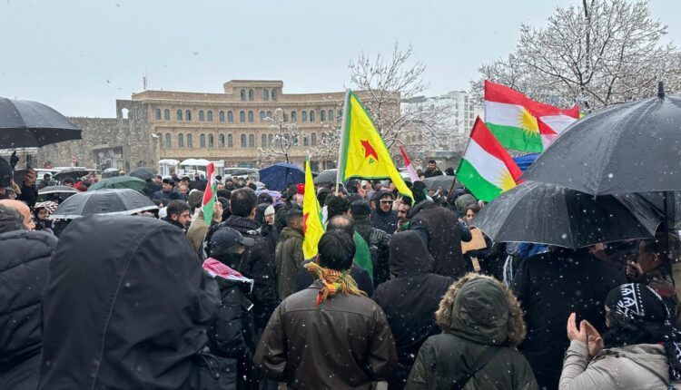 Gelê Silêmaniyê tevî hewayê sar û barîna befrê, bi armanca piştgiriya Rojavayê Kurdistanê li Baxê Giştî kom bû. Tê payîn ku dê hezaran kes kom bibin û îro jî ji bo piştgiriya Rojava meş li dar bixin.
