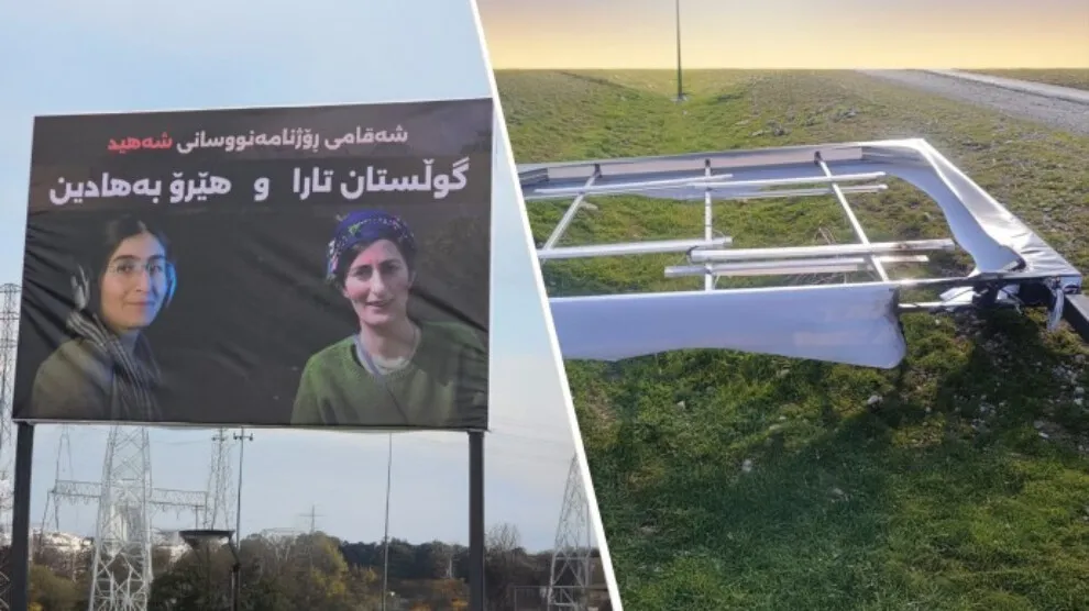Li gorî nûçeya Rojnewsê; tabelaya ku wêneyên her du rojnamegeran li ser bû, hat rûxandin û piştre jî hat şewitandin. Heta niha jî têkildarî kesên ev êrîş kirine, tu daxuyaniyên fermî nehatiye dayîn.