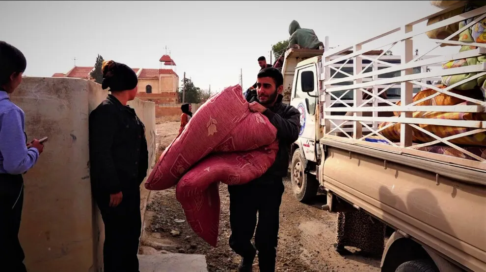 Til Temir bi ruhê hevgirtinê koçberên ji Şehbayê pêşwazî dike