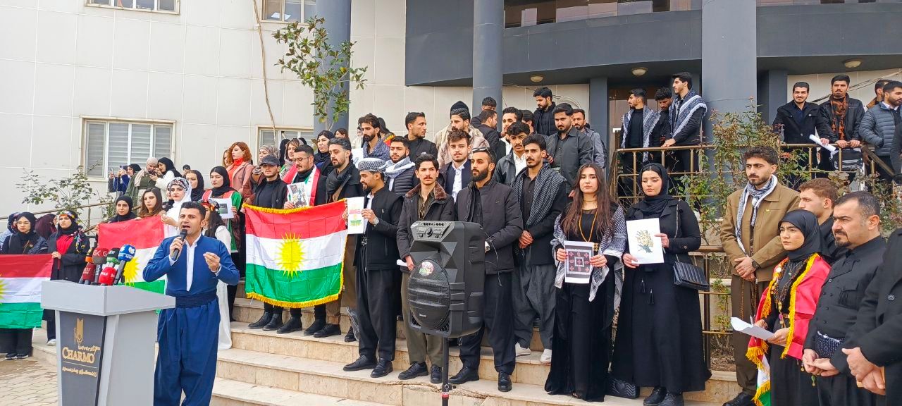 Xwendevan û mamosteyên Zanîngeha Çemçemalê ji bo piştgiriya Rojava çalakiyek kirin. Mamosteyê Zanîngehê Dr. Hejar Berzencî axivî û got: “Ya niha li Rojavayê Kurdistanê tê kirin qirkirin û komkujiya bi sere Kurdan anîne. Em vê yekê qebûl nakin, divê yekgirtî bîn.