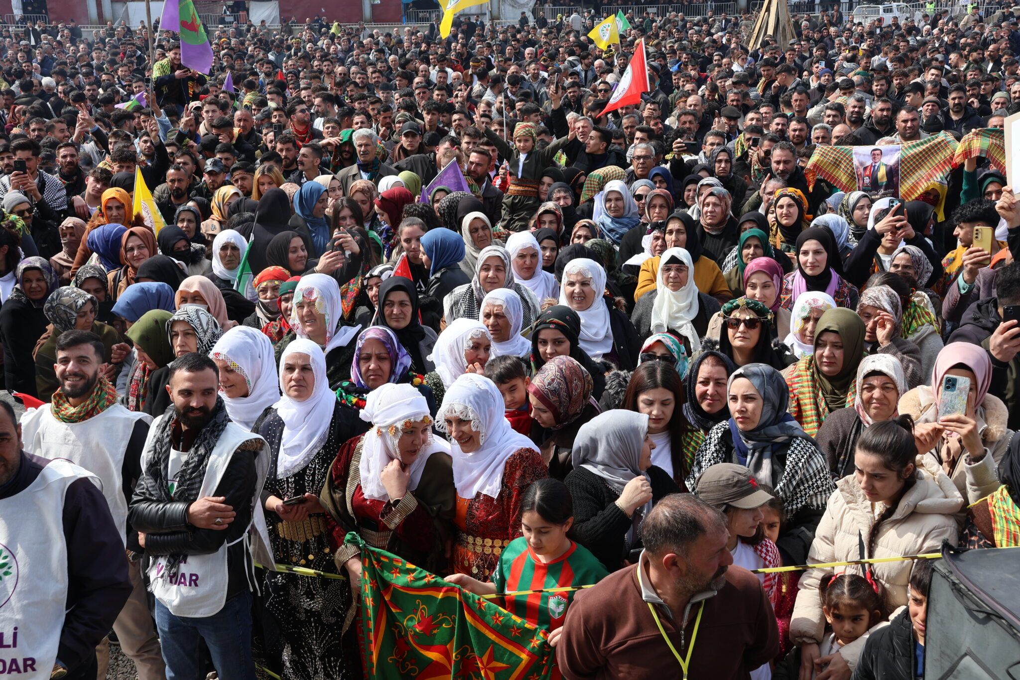 Hevserokê Giştî yê DBPê Keskîn Bayindir jî diyar kir ku agirê Newrozê ji roja yekem ve her ku diçe geştir dibe û got: “Newroza 2026an, azadbûna Rêber Ocalan û gelê kurd e. Ez Newroza girtiyan jî pîroz dikim. Heke em îro dikarin vê Newrozê pîroz bikin, bi saya têkoşîna hatî dayîn e. Gelê kurd bi rojan e Newrozê pîroz dike û dixwaze qedera xwe bi destê xwe tayîn bike. Em jî ji bo vê têkoşînê dikin. Duh girtiyekî siyasî di girtîgehê de jiyana xwe ji dest da. Di dema ku Devlet Bahçelî digot ‘hûn nikarin kurd û tirkan ji hev veqetînin’, hevalê me yê girtî jiyana xwe ji dest da. Heke niyeta we biratî û aşitî be, rêya wê diyar e. Dawî li dijminatiya li dijî Kurdan bînin, bila Rêber Ocalan azad bibe. Azadiya Rêber Ocalan azadiya gelê kurd e. Bila baş bizanibin ku gelê kurd li hemberî zaliman serî netewandiye û wê netewîne jî. Em baweriya xwe bi vê pêvajoya ku Rêberê Gelê Kurd Abdullah Ocalan pêşengiya wê dike, tînin. Em ji bo statu, ziman û rûmeta xwe têkoşînê dikin û em ê berdewam bikin.”