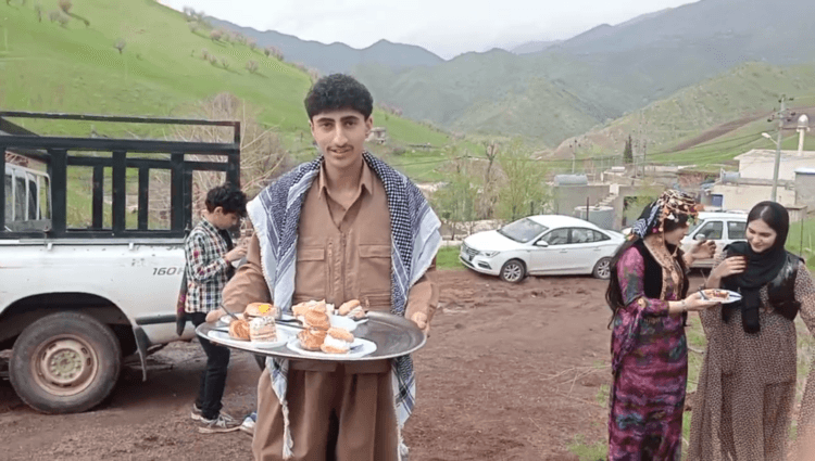 Piştî dar çandinê, ciwan û jinan paste belav kirin.